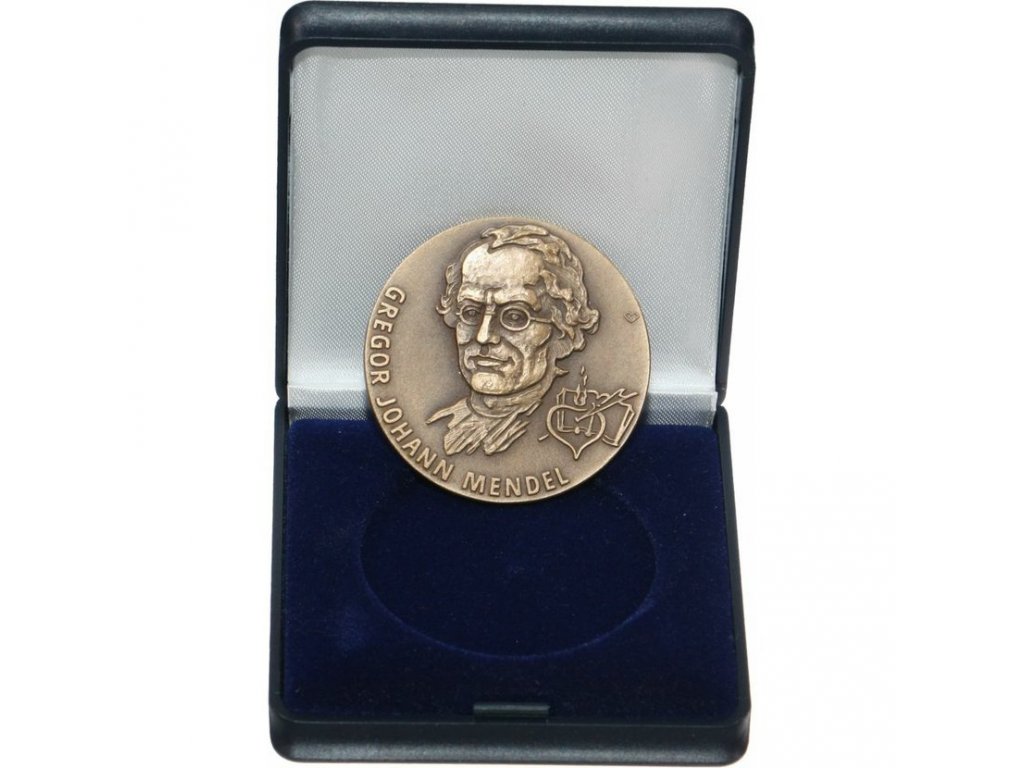 Pamětní medaile s G. J. Mendelem v reprezentativním balení v sametu.